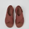 Red textile women’s cross-strap sandals with recycled neoprene, recycled polyester & PU linings, and EVA footbeds and outsoles.