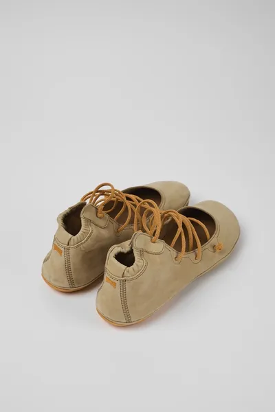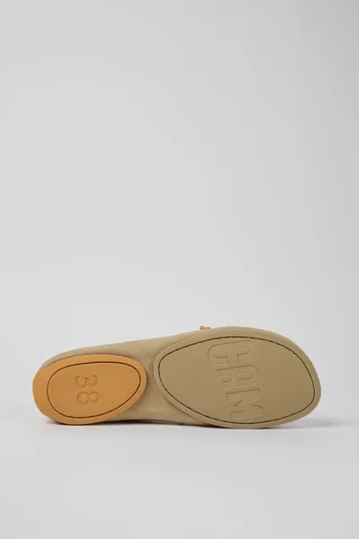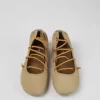 Beige leather women’s lace-up shoes with EVA footbeds and rubber outsoles.