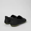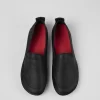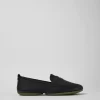 Black leather women’s loafers with EVA footbeds and rubber outsoles.