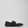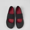 Black women’s Mary Janes with recycled leather, EVA footbeds and rubber outsoles.