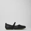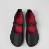 Black leather women’s Mary Janes with EVA footbeds and rubber outsoles.