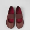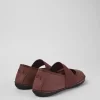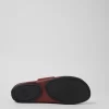 Red women’s Mary Janes with recycled leather, EVA footbeds and rubber outsoles.