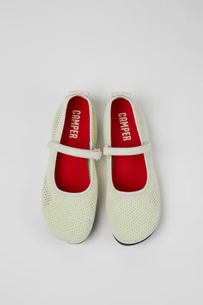 Multicolor TENCEL® Lyocell mesh and leather women’s ballerina with EVA footbed, hook & loop system, and recycled rubber outsoles (20% recycled).