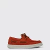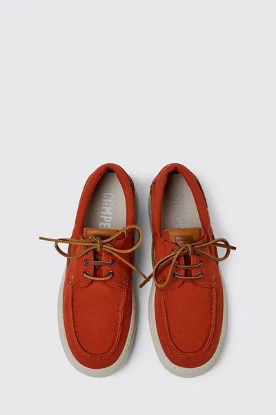 Red recycled cotton men’s boat shoes with XL EXTRALIGHT® outsoles.