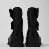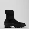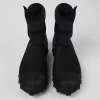Black recycled PET neoprene medium boots with hook-and-loop closures, toothed rubber outsoles and recycled OrthoLite® cushioned footbeds.