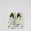 Multicolored leather kids’ slip-on shoes with elastic laces, EVA footbeds and rubber outsoles.