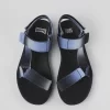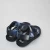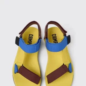 Multicolored men’s sandals with recycled polyester, ankle straps, and EVA/rubber outsoles.