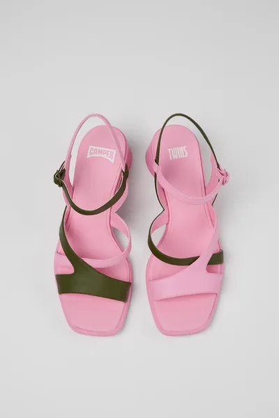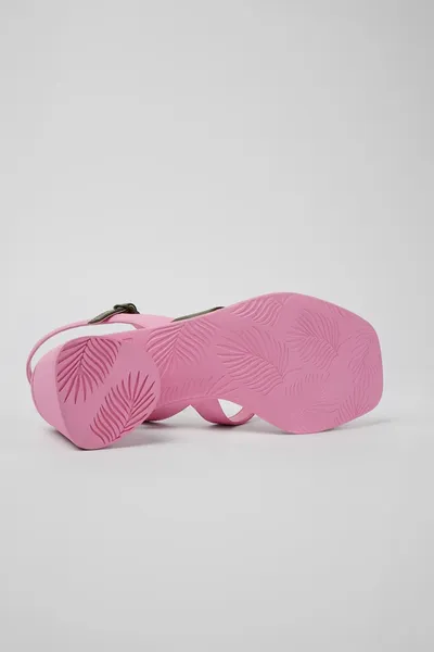 Multicolored leather women’s open-toe slingback with recycled OrthoLite® footbeds and 100% rubber outsoles.