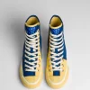 Vulcanized multicolored cotton canvas high-top sneakers with asymmetric design.