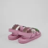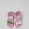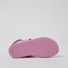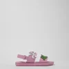Pink leather kids’ 2-strap sandals with chrome-free leather-lined footbeds and 100% rubber outsoles.