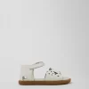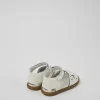 White leather kids’ 2-strap sandals with hook-and-loop closures, chrome-free leather-lined footbeds and 100% rubber outsoles.