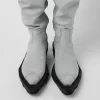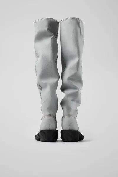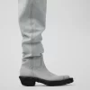 Blue knee-high cowboy boots with quality soft-feel Candiani denim for durability, EVA footbeds, and rubber outsoles.