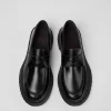 Black calfskin moccasins/nautical shoes for men with removable OrthoLite® Recycled™ footbeds and rubber outsoles.