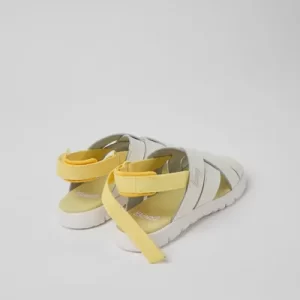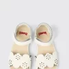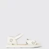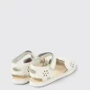 White leather girls’ sandals with hook-and-loop closing system and 100% rubber outsoles.