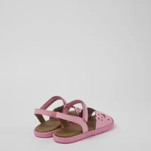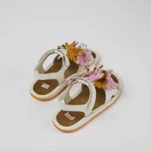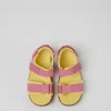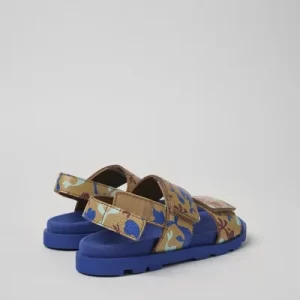 Multicolored textile kids’ sandals with OrthoLite® Recycled™ removable footbeds and rubber outsoles (20% recycled).